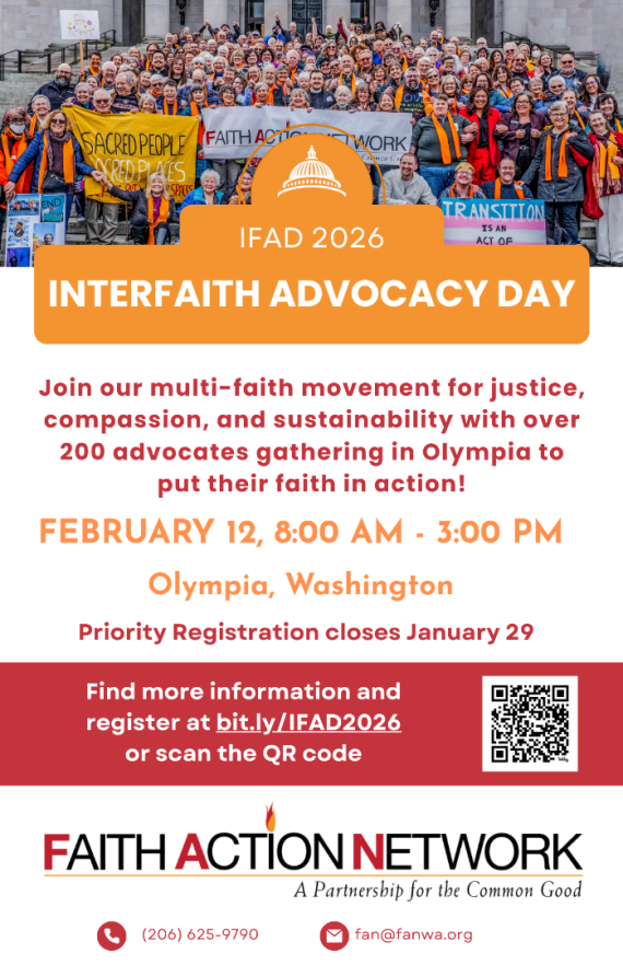 The challenge is significant with a $2.3 billion dollar shortfall. The governor has proposed using approximately $1 billion from the Rainy Day Fund, alongside nearly $800 million in agency-level cuts and $569 million from Climate Commitment Act, to help close the gap. As always, FAN will advocate for a moral budget and address Washington’s upside-down tax system to maintain essential public services like healthcare, food security, and housing.